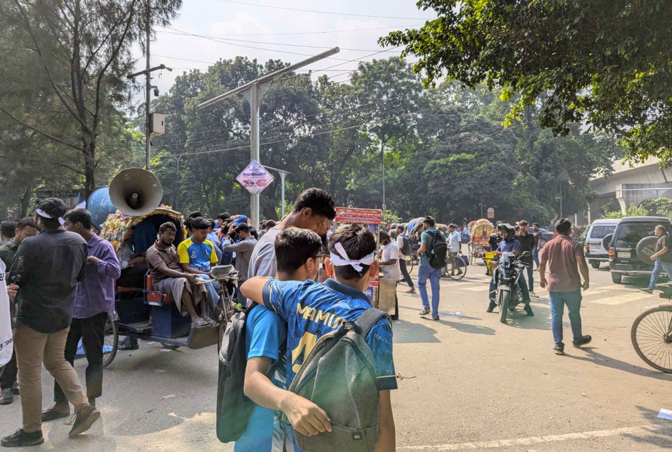 বেলা ১১টা ২০ মিনিটে শহীদ সোহরাওয়ার্দী কলেজ ও কবি নজরুল সরকারি কলেজের শতাধিক শিক্ষার্থী প্রথমে মিছিল নিয়ে আসে। পরে ঢাকা কলেজ, তিতুমীর কলেজ, ইডেন কলেজ, বদরুন্নেসা মহিলা কলেজ ও মিরপুর বাংলা কলেজের শিক্ষার্থীরা যোগ দিলে পুরো এলাকা স্লোগানে মুখর হয়ে ওঠে।