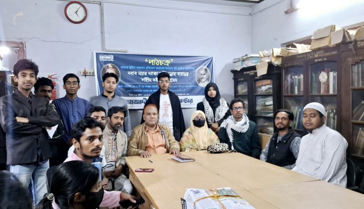 আজাদী কালচারাল সেন্টারের উদ্যোগে ৬ ফেব্রুয়ারী শুক্রবার বিকাল ৫ ঘটিকায় খুলনা বিএমএ ভবন মিলনায়তনে জাতির পথিকৃত নবাব স্যার সলিমুল্লাহ বাহাদুর ও শহীদ নজীর আহমেদের স্মরনে “আজাদী কালচারাল সেন্টারের” উদ্যোগে ফয়জুল্লাহ ইকবাল শাকিলের সভাপতিত্বে অনুষ্ঠিত এ পাঠচক্রে প্রধান অতিথি মুখ্য আলোচক হিসেবে উপস্থিত ছিলেন আজাদ বার্তা সম্পাদক এডভোকেট এম.এম.মাফতুন আহমেদ।