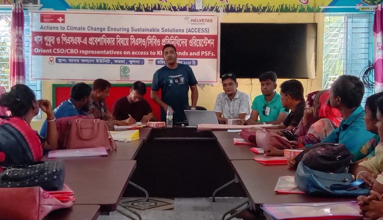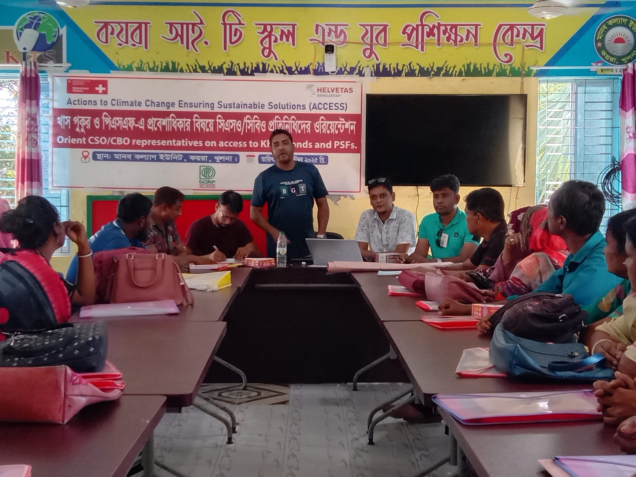 কয়রায় খাস পুকুর ও পিএসএফে প্রবেশাধিকার বিষয়ে ওরিয়েন্টেশন