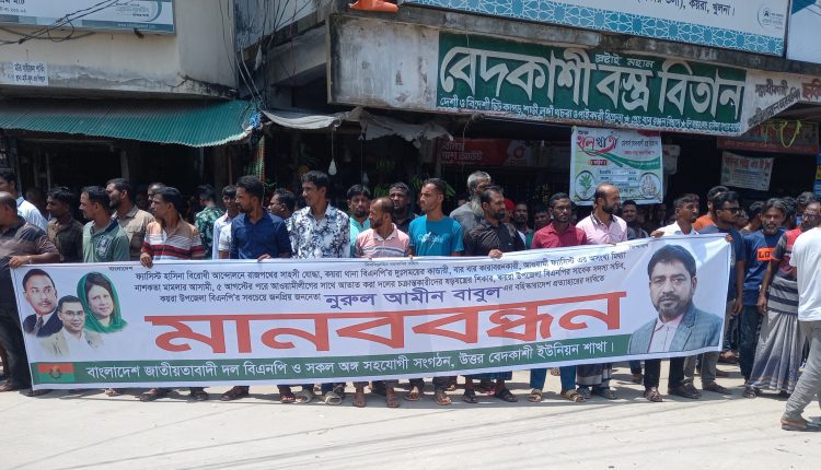 কয়রায় বিএনপির ত্যাগী নেতা বাবুলের বহিষ্কারাদেশ প্রত্যাহারের দাবিতে মানববন্ধন