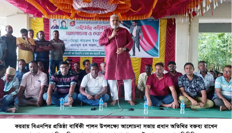কয়রা(খুলনা)প্রতিনিধিঃ বাংলাদেশ জাতীয়তাবাদী দল বিএনপির ৪৭ তম প্রতিষ্ঠা বার্ষিকী পালন উপলক্ষে আলোচনা ও দোয়া মাহফিল অনুষ্ঠিত হয়েছে।