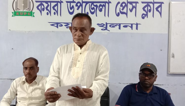 শুক্রবার (৩০ মে) সকাল ১০ টায় কয়রা উপজেলা প্রেসক্লাবে সংবাদ সম্মেলনে লিখিত বক্তব্য তিনি বলেন, সম্প্রতি তরুণ প্রকাশ রায় ও তার পুত্র তাদের বিরুদ্ধে সংবাদ সম্মেলনের মাধ্যমে যে সকল অভিযোগ করেছে তা সম্পুর্ন মিথ্যা, বানোয়াট ও ভিত্তিহীন।