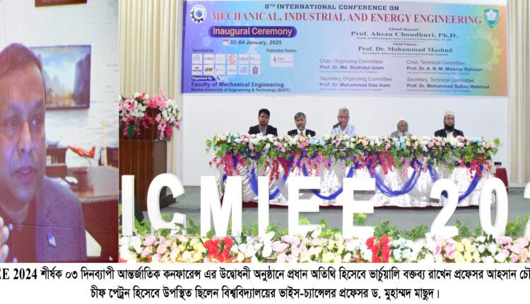 খুলনা প্রকৌশল ও প্রযুক্তি বিশ্ববিদ্যালয়ে (কুয়েট) ৩ (তিন) দিনব্যাপী ৮ম ইন্টারন্যাশনাল কনফারেন্স অন মেকানিক্যাল, ইন্ডাস্ট্রিয়াল এন্ড এনার্জি ইঞ্জিনিয়ারিং ( ICMIEE) ২০২৪ শীর্ষক আন্তর্জাতিক কনফারেন্স শুরু হয়েছে।