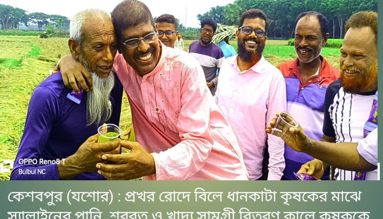 কেশবপুরের ১৫টি বিলে তৃষ্ণার্ত ১ হাজার কৃষকের মাঝে স্যালাইনের পানি, সরবত ও খাদ্য সামগ্রী  বিতরন