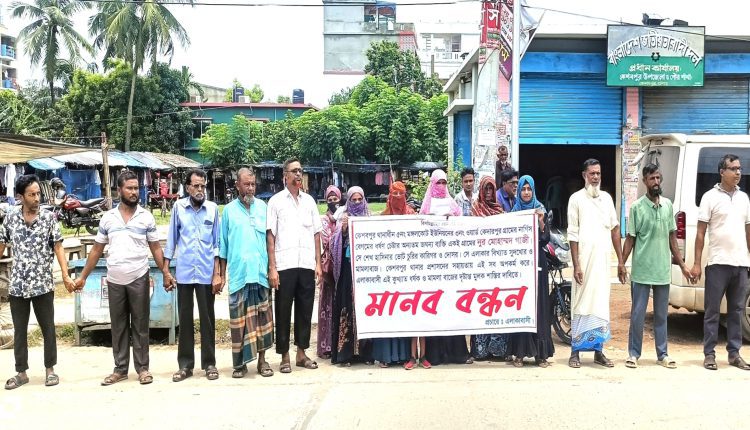 যশোরের কেশবপুরে গৃহবধু নার্গিস বেগমকে ধর্ষনের চেষ্টার ঘটনায় গত ১০ দিনেও থানা পুলিশ মামলা না নেওয়ায় বিচার চেয়ে রবিবার (৩ জুলাই) মাবনবন্ধন করেছে গ্রামবাসী।