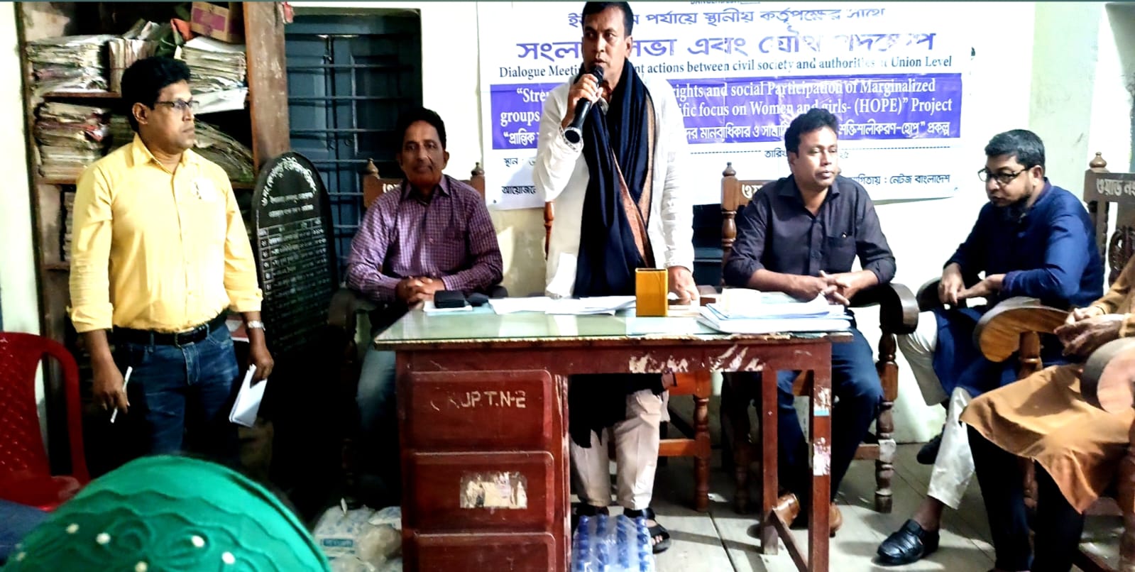 কেশবপুর (যশোর) প্রতিনিধি :যশোরের কেশবপুরে নেটজ বাংলাদেশ-এর সহযোগিতায় রিসার্চ ইনিশিয়েটিভস্ বাংলাদেশ (রিইব) আয়োজিত ইউনিয়ন পর্যায়ে স্থানীয় কর্তৃপক্ষের সাথে যৌথ পদক্ষেপ সংলাপ সভা অনুষ্ঠিত হয়েছে। মঙ্গলবার (১৮ নভেম্বর) সকাল ১১টায় কেশবপুর সদর ইউনিয়ন পরিষদ হলরুমে অনুষ্ঠিত এ সংলাপে ইউনিয়নের গুরুত্বপূর্ণ জনপ্রতিনিধি, সিএসও সদস্য ও রিইবের প্রতিনিধিদের সক্রিয় অংশগ্রহণে স্থানীয় নানা সামাজিক সমস্যা ও সমাধান নিয়ে আলোচনা হয়।