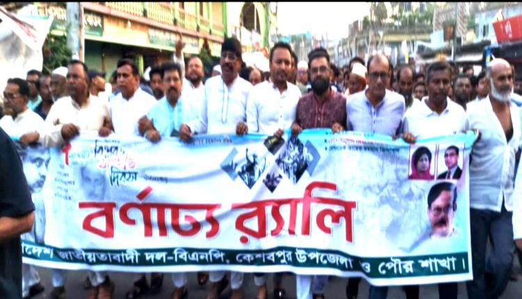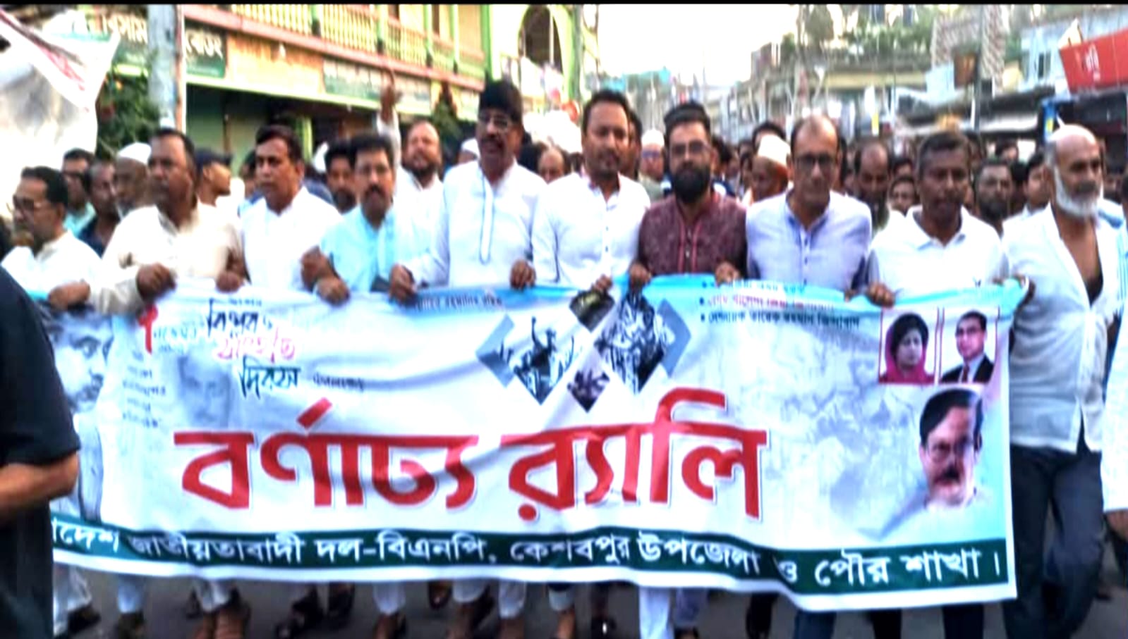 কেশবপুর( যশোর) প্রতিনিধি :বিপ্লব ও সংহতির চেতনায় নেতাকর্মীদের ঐক্যের আহবান জানিয়ে ৭ই নভেম্বর শুক্রবার কেশবপুরে বাংলাদেশ জাতীয়তাবাদী দল (বিএনপি)-এর উদ্যোগে এক বর্ণাঢ্য র‍্যালি শহরের প্রধান প্রধান সড়ক প্রদক্ষিণ করে। দিনব্যাপী এ কর্মসূচিতে অংশ নেন বিএনপি এবং অঙ্গ-সহযোগী সংগঠনের হাজারো নেতাকর্মী।