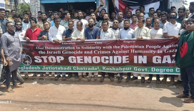 কেশবপুর বিএনপির পক্ষ থেকে  ফিলিস্তিনে ইসরায়েলি গণহত্যা ও বর্বরোচিত হামলার প্রতিবাদে বিক্ষোভ