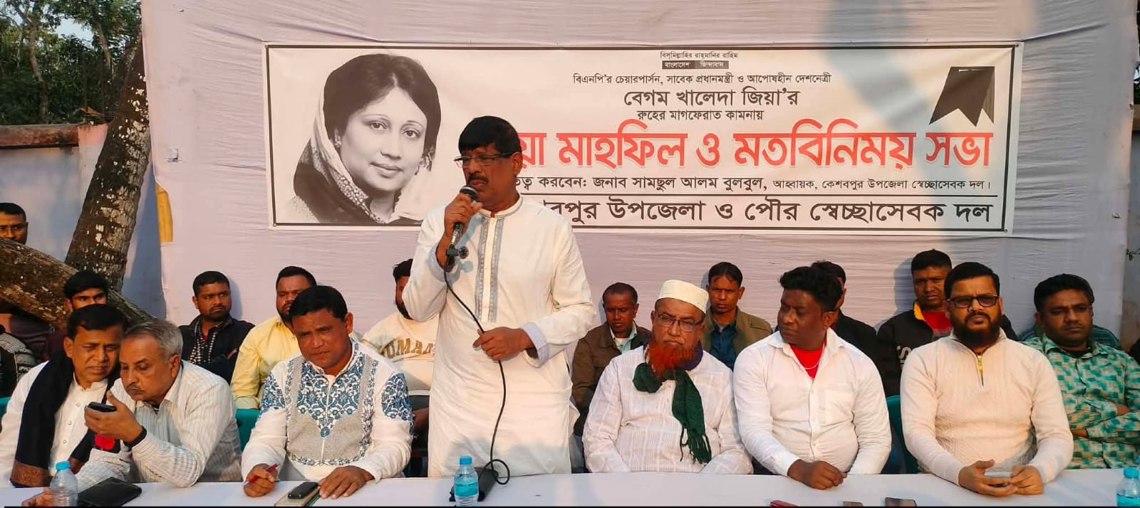 কেশবপুর (যশোর) প্রতিনিধি: কেশবপুর উপজেলা স্বেচ্ছাসেবক দল ও কেশবপুর পৌর স্বেচ্ছাসেবক দলের উদ্যোগে আপোষহীন দেশনেত্রী, সাবেক প্রধানমন্ত্রী বেগম খালেদা জিয়ার রুহের মাগফিরাত কামনায় এক দোয়া মাহফিল ও পরিচিতি সভা অনুষ্ঠিত হয়েছে।