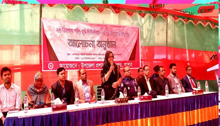 অনুষ্ঠানে প্রধান অতিথি হিসেবে বক্তব্য রাখতে গিয়ে কেশবপুর উপজেলা নির্বাহী অফিসার রেকসোনা খাতুন বলেন,১৪ ডিসেম্বর আমাদের জাতীয় ইতিহাসের এক নির্মম কলঙ্কিত অধ্যায়। মুক্তিযুদ্ধের চূড়ান্ত বিজয়ের প্রাক্কালে পাকিস্তানি হানাদার বাহিনী ও তাদের দেশীয় দোসররা পরিকল্পিতভাবে শিক্ষক, চিকিৎসক, সাংবাদিক, সাহিত্যিকসহ জাতির শ্রেষ্ঠ বুদ্ধিজীবীদের হত্যা করে। এটি ছিল সদ্য স্বাধীন হতে যাওয়া বাংলাদেশকে মেধাশূন্য ও নেতৃত্বহীন করার এক ভয়াবহ ষড়যন্ত্র।