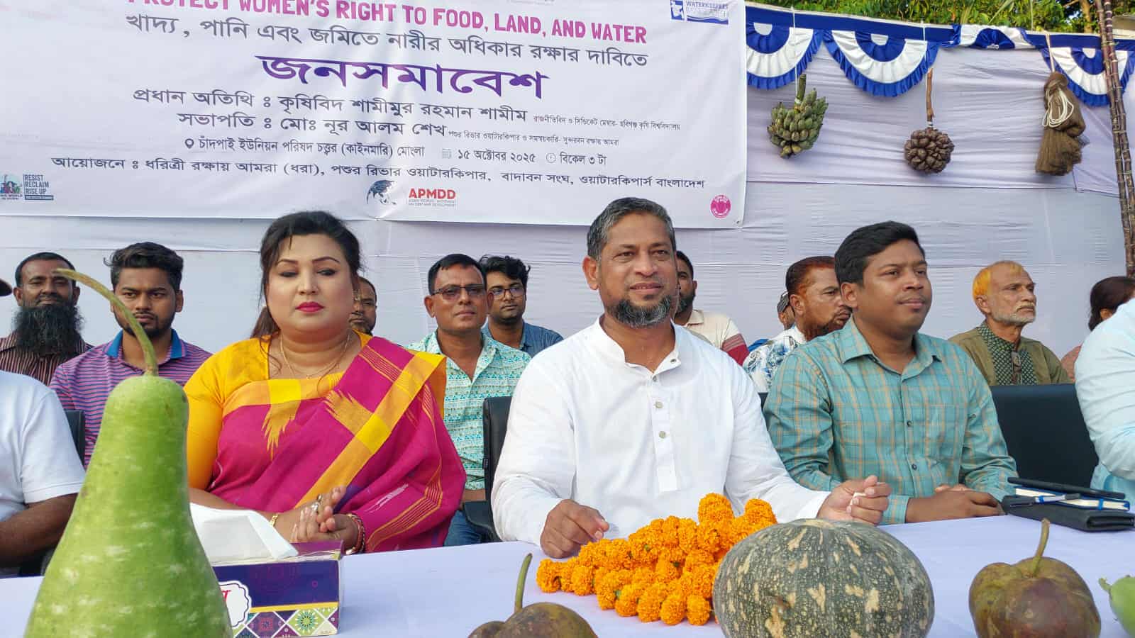 উপকূলীয় নারী, বনজীবী, মৎস্যজীবী, ভূমিহীন, জলবায়ু উদ্বাস্তুসহ নানা শ্রেণী পেশার মানুষের অংশগ্রহণে খাদ্য, পানি এবং জমিতে নারীর অধিকার রক্ষার দাবিতে এ জনসমাবেশ অনুষ্ঠিত হয়। ধরিত্রী রক্ষায় আমরা (ধরা), ওয়াটারকিপার্স বাংলাদেশ, বাদাবন সংঘ ও পশুর রিভার ওয়াটারকিপার এ জনসমাবেশের আয়োজন করে।