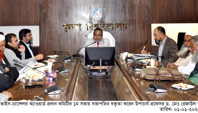 তাদের নিরলস প্রচেষ্টায় খুলনা বিশ্ববিদ্যালয় ইতোমধ্যে শিক্ষা-গবেষণায় একটি অবস্থান তৈরি করে নিতে সক্ষম হয়েছে। তাঁদের এ অবদানকে যথাযথভাবে মূল্যায়ণ এবং আরও বেশি উৎসাহিত করার জন্যই এই ভাইস-চ্যান্সেলর অ্যাওয়ার্ড। তিনি সংশ্লিষ্টদের প্রতি সঠিকভাবে উপযুক্ত অ্যাওয়ার্ডি মনোনয়ন জন্য নির্দেশনা প্রদান করেন। এসময় উপস্থিত ছিলেন, বিজ্ঞান, প্রকৌশল ও প্রযুক্তিবিদ্যা স্কুলের ডিন প্রফেসর ড. মো. আশরাফুল আলম, জীববিজ্ঞান স্কুলের ডিন প্রফেসর ড. মো. গোলাম হোসেন, ব্যবস্থাপনা ও ব্যবসায় প্রশাসন স্কুলের ডিন প্রফেসর ড. মো. নূর আলম, সামাজিক বিজ্ঞান স্কুলের ডিন প্রফেসর ড. আব্দুল্লাহ আবুসাঈদ খান, কলা ও মানবিক স্কুলের ডিন প্রফেসর ড. মো. শাহজাহান কবীর, আইন স্কুলের ডিন (ভারপ্রাপ্ত) প্রফেসর ড. মো. নাসিফ আহসান, চারুকলা স্কুলের ডিন (ভারপ্রাপ্ত) প্রফেসর ড. শেখ সিরাজুল হাকিম, শিক্ষা স্কুলের ডিন (ভারপ্রাপ্ত) প্রফেসর ড. মো. ইমদাদুল হক এবং রিসার্স এন্ড ইনোভেশন সেন্টারের পরিচালক প্রফেসর ড. কাজী মোহাম্মাদ দিদারুল ইসলাম।