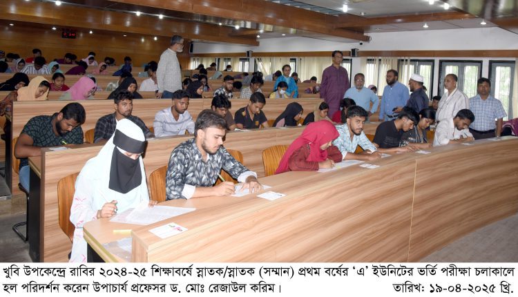 খুলনা বিশ্ববিদ্যালয়ে উপকেন্দ্রে রাজশাহী বিশ্ববিদ্যালয়ের ২০২৪-২৫ শিক্ষাবর্ষে স্নাতক/স্নাতক (সম্মান) প্রথম বর্ষের ‘এ’ ইউনিটের ভর্তি পরীক্ষা আজ ১৯ এপ্রিল (শনিবার) সুষ্ঠু ও শান্তিপূর্ণভাবে অনুষ্ঠিত হয়েছে। সকাল ১০টা থেকে দুপুর ১২টা এবং দুপুর ২.৩০ মিনিট থেকে বিকাল ৩.৩০ মিনিট পর্যন্ত দুইটি ধাপে এ পরীক্ষা অনুষ্ঠিত হয়।