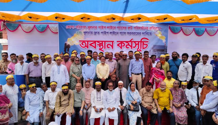ভোলা-বরিশাল-খুলনার পাইপ লাইনে গ্যাসের রুট পরিবর্তনের প্রতিবাদে এবং খুলনায় দ্রুত পাইপ লাইনে গ্যাস সরবরাহের দাবিতে বৃহত্তর খুলনা উন্নয়ন সমন্বয় সংগ্রাম কমিটির উদ্যোগে খুলনা জেলা প্রশাসক কার্যালয় চত্বরে বুধবার সকাল ১১ টায়া বৃহত্তর খুলনা উন্নয়ন সমন্বয় সংগ্রাম কমিটির সভাপতি শেখ আশরাফ উজ জামান এর সভাপতিত্বে অবস্থান কর্মসূচি ও ফারুক লিপি প্রদান অনুষ্ঠান অনুষ্ঠিত হয়।