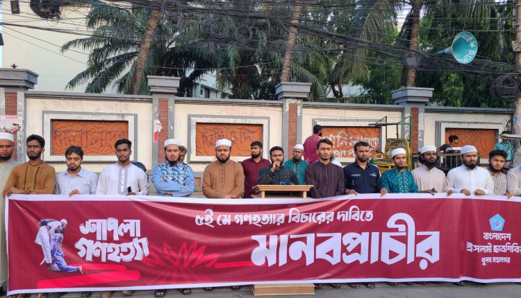 ২০১৩ সালের ৫ই মে শাপলা চত্বর গণহত্যার বিচারের দাবিতে কেন্দ্র ঘোষিত মানবপ্রাচীরের আয়োজন করে বাংলাদেশ ইসলামী ছাত্রশিবির খুলনা মহানগর শাখা।সোমবার বিকাল সাড়ে পাঁচটায় নগরের শিববাড়ি মোড়ে এ মানবপ্রাচীরের আয়োজন করা হয়।