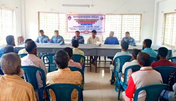 খুলনার কয়রা ও ভান্ডারিয়ায় স্থানীয় মৎস্য জীবিদের উদ্দেশ্যে কোস্ট গার্ডের জনসচেতনতা মূলক কার্যক্রম