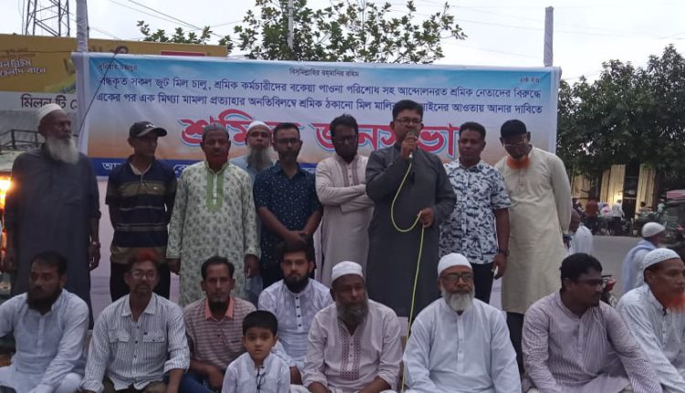 খুলনা ফুলবাড়ীগেটে সকল জুটমিল চালু ও শ্রমিকদের বকেয়া আদায়ের দাবিতে শ্রমিক জনসভা