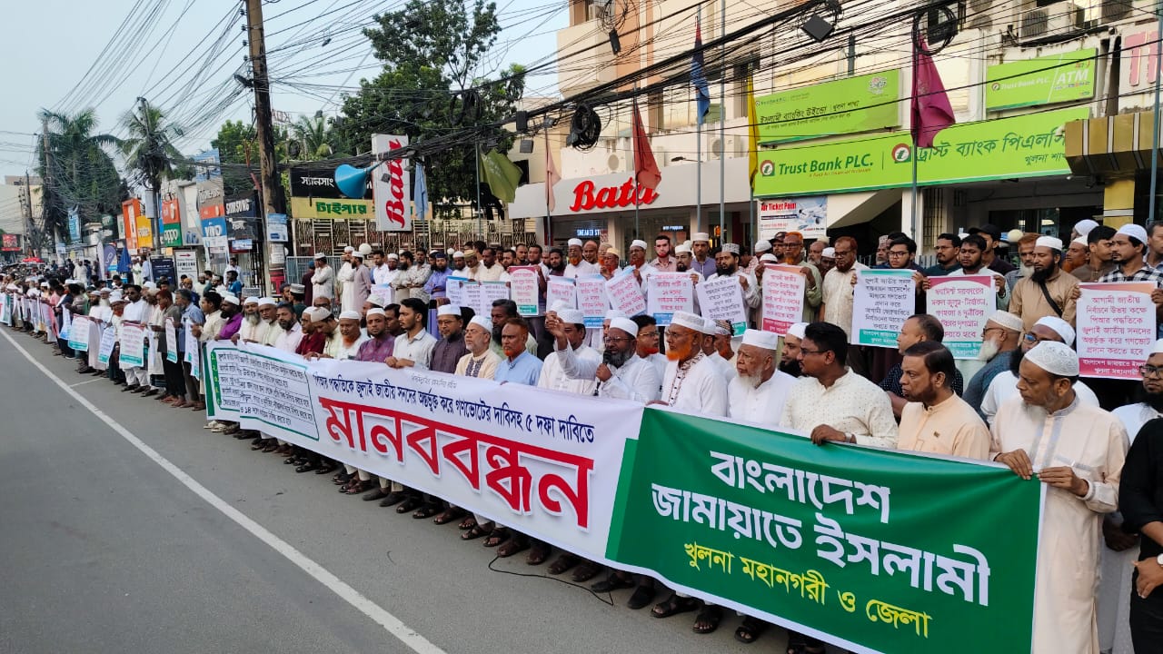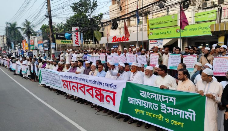 খুলনা মহানগরী ও জেলা জামায়াতের মানববন্ধন