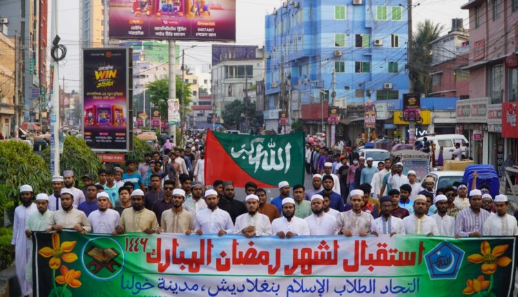 খুলনা মহানগরে মাহে রমজানকে স্বাগত জানিয়ে রমজানের পবিত্রতা রক্ষার দাবিতে বাংলাদেশ ইসলামী ছাত্রশিবিরের বর্ণাঢ্য র‌্যালি অনুষ্ঠিত।