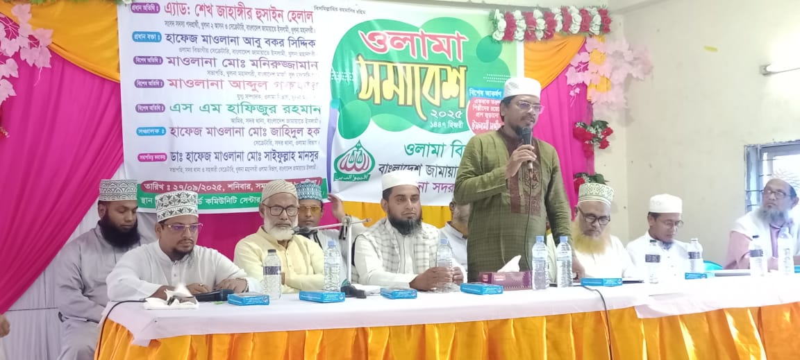 খুলনার পিটিআই কমিউনিটি সেন্টারে শনিবার বাংলাদেশ জামায়াতে ইসলামী খুলনা সদর থানা ওলামা বিভাগের সভাপতি ডাঃ হাফেজ মাওলানা মোঃ সাইফুল্লাহ মানসুর এর সভাপতিত্বে, সেক্রেটারি হাফেজ মাওলানা মোঃ জাহিদুল হক এর পরিচালনায় সকাল ৮টায় এ সমাবেশ শুরু হয়।