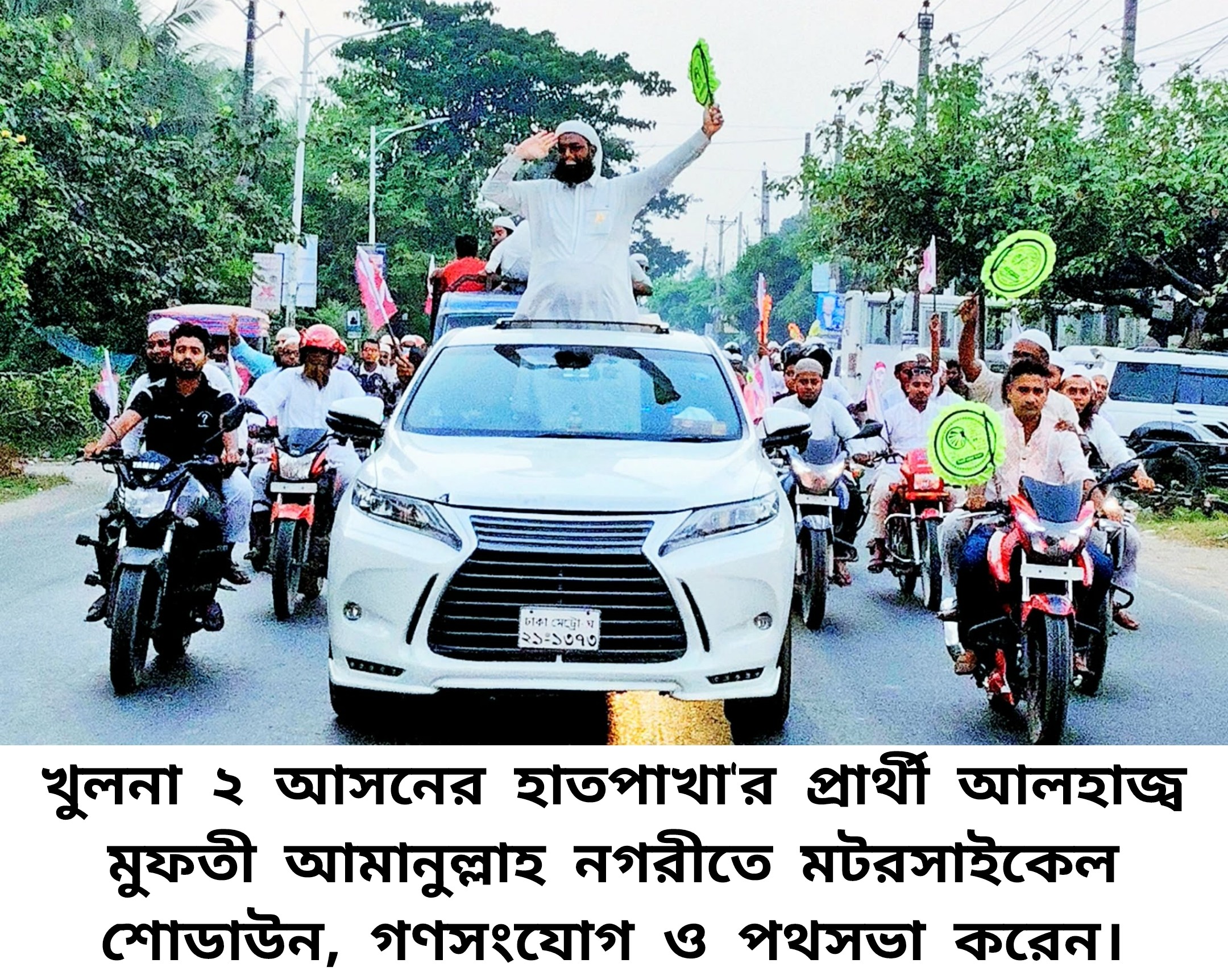 খুলনা ২ আসনে হাতপাখা প্রার্থী মুফতী আমানুল্লাহ’র মটরসাইকেল শোডাউন ও গণসংযোগ