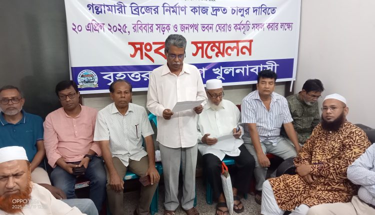 গল্লামারী ব্রিজের নির্মাণ কাজ দ্রুত চালুর দাবিতে সড়ক ও জনপথ ভবন ঘেরাও কর্মসূচি সফল করার লক্ষে সংবাদ সম্মেলন