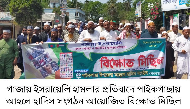 গাজায় ইসরায়েলি হামলার প্রতিবাদে পাইকগাছায় হেফাজত ও আহলে হাদিসের বিক্ষোভ