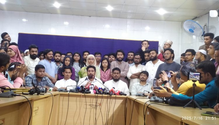 সংবাদ সম্মেলনে এনসিপির কেন্দ্রীয় সদস্য সচিব আকতার হোসেন, ডা: তাসনিম জারা, হাসানাত আবদুল্লাহ, সারজিস আলমসহ অন্য কেন্দ্রীয় ও এনসিপি খুলনার নেতারা উপস্থিত ছিলেন।