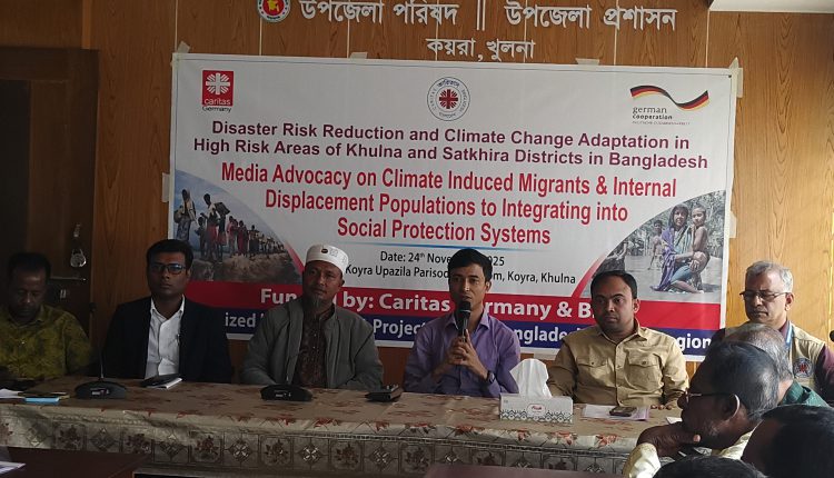 কয়রা(খুলনা) প্রতিনিধিঃ ​জলবায়ু পরিবর্তনের করাল গ্রাসে ঘরছাড়া হচ্ছে উপকূলীয় অঞ্চলের হাজার হাজার মানুষ। এমন বাস্তবতায়, স্থানচ্যুত এই জনগোষ্ঠীকে সামাজিক সুরক্ষার আওতায় আনতে এবং তাদের পুনর্বাসনে কার্যকর ব্যবস্থা গ্রহণের দাবিতে খুলনার কয়রা উপজেলায় এক গুরুত্বপূর্ণ মিডিয়া অ্যাডভোকেসি সভা অনুষ্ঠিত হলো।