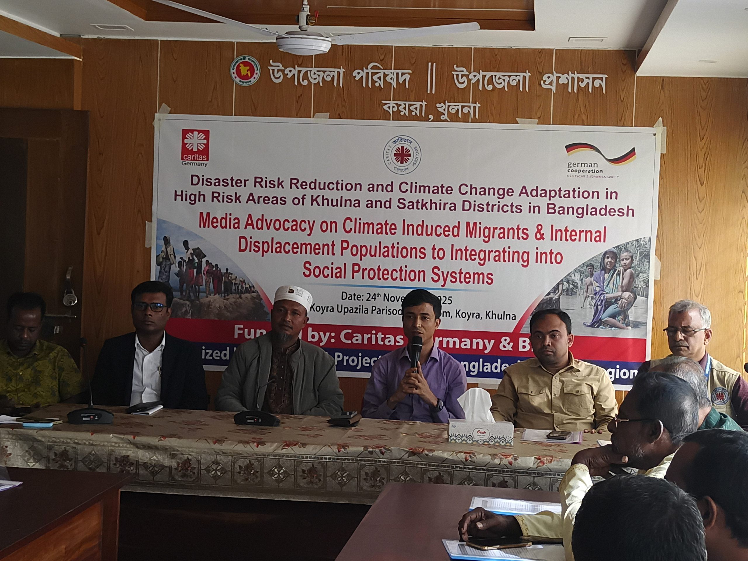 ​সোমবার (২৪ নভেম্বর) সকাল ১০টায় কয়রা উপজেলা পরিষদ হলরুমে আয়োজিত এই সভায় জলবায়ু পরিবর্তনের নেতিবাচক প্রভাব ও অভ্যন্তরীণ অভিবাসন নিয়ে গভীর উদ্বেগ প্রকাশ করা হয়। কারিতাস জার্মানি ও বিএমজেড-এর আর্থিক সহায়তায় কারিতাস খুলনা অঞ্চলের “ডিআরআর এন্ড সিসিএ” প্রকল্পের উদ্যোগে এই অ্যাডভোকেসি অনুষ্ঠিত হয়।​