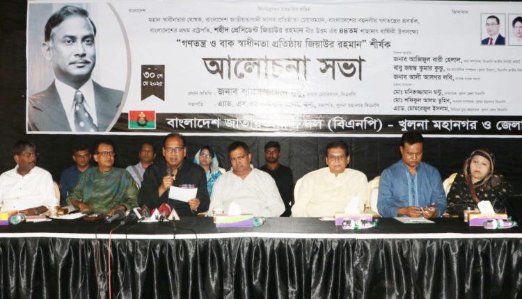 খুলনা প্রেস ক্লাব ব্যাংকুয়েট হলে খুলনা মহানগর ও জেলা বিএনপি’র উদ্যোগে “গণতন্ত্র ও বাক স্বাধীনতা প্রতিষ্ঠায় জিয়াউর রহমান” শীর্ষক আলোচনায় প্রধান অতিথির বক্তব্যে তিনি এসব কথা বলেন।