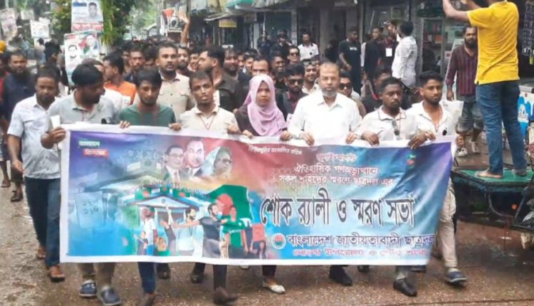 জুলাই-আগস্ট ঐতিহাসিক গণঅভ্যুত্থানে সকল শহীদদের স্মরণে মোংলায় ছাত্রদলের শোক র‍্যালী ও স্মরণ সভা