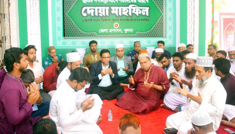 খুলনা জেলা প্রশাসনের আয়োজনে জুলাই গণঅভ্যুত্থানে শহীদদের স্মরণে দোয়া মাহফিল আজ (মঙ্গলবার) বাদজোহর কালেক্টরেট জামে মসজিদে অনুষ্ঠিত হয়। এতে প্রধান অতিথি ছিলেন খুলনার বিভাগীয় কমিশনার মোঃ ফিরোজ সরকার।