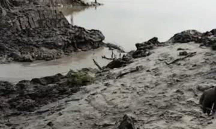 দাকোপে তিলডাঙ্গায় হরিসভা মন্দিরে সামনে নদীভাঙ্গন।