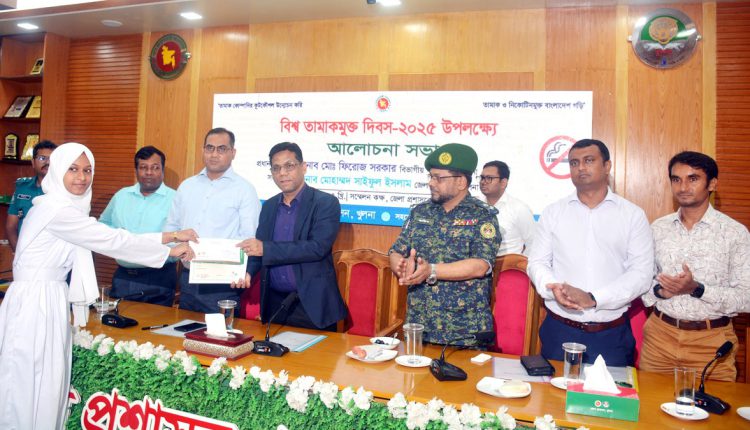 খুলনার জেলা প্রশাসক মোহাম্মদ সাইফুল ইসলামের সভাপতিত্বে অনুষ্ঠানে বিশেষ অতিথির বক্তৃতা করেন অতিরিক্ত বিভাগীয় কমিশনার (উন্নয়ন) আবু সায়েদ মোঃ মনজুর আলম, আনসার ও ভিডিপির পরিচালক এ এস এম আজিম উদ্দিন, ডেপুটি সিভিল সার্জন ডা. সৈকত মোঃ রেজাওয়ানুল হক ও সহকারী পুলিশ কমিশনার মো: শিহাব করিম। এতে প্রবন্ধ উপস্থাপন করেন জাতীয় তামাক নিয়ন্ত্রণ সেলের জেলা টাস্কর্ফোস কমিটির সদস্য কাজী মোহাম্মদ হাসিবুল হক। জাতীয় তামাক নিয়ন্ত্রণ সেলের সহযোগিতায় খুলনা বিভাগীয় ও জেলা প্রশাসন এ অনুষ্ঠানের আয়োজন করে।