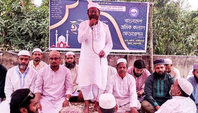প্রধান অতিথি আরও বলেন, আল্লাহ রাব্বুল আলামিন মানুষকে শ্রমিকের অধিকার লঙ্ঘন না করতে এবং তাদের সাথে ইনসাফপূর্ণ আচরণ করার নির্দেশ দিয়েছেন। রাসুল (সা.) এর শ্রমিকদের অধিকার রক্ষায় সর্বোচ্চ সচেষ্ট ছিলেন। শ্রমিকদের কেন্দ্র করে অনেক শ্রমিক সংগঠন ও ট্রেড ইউনিয়ন গড়ে উঠেছে। এই সংগঠনের নেতারা শ্রমিকদের কষ্ট ব্যথা বেদনার খবর জানেন। কিন্তু গতানুগতিক ধারার শ্রমিকনেতারা শ্রমিকদের দুর্দশা কীভাবে দূর করতে হবে সে সম্পর্কে ওয়াকিফহাল নন বরং শ্রমিকদের পুঁজি করে কীভাবে নিজেদের ভাগ্য বদলাতে হবে তা ভালো করে জানেন। ফলে শ্রমজীবী মানুষরা প্রতি যুগে এই সমস্ত ট্রেড ইউনিয়ন ও নেতৃত্বের কাছে বারবার প্রতারিত হয়েছে এবং এখনো হচ্ছে। আল্লাহ মানবজাতিকে ন্যায় ও ইনসাফের বিধান দিয়েছেন তা যদি রাষ্ট্রীয় পর্যায়ে প্রতিপালন করা হয় তাহলে শ্রমিকের দুঃখ ব্যাথা বেদনা দূর হবে। ইনসাফের মানদন্ডের ওপর যার যার প্রাপ্যতা নিশ্চিত হবে ইনশাআল্লাহ।