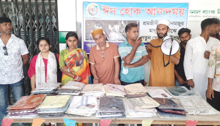 নড়াইলে বেসরকারি সেবা সংস্থা স্বপ্নের খোঁজে ফাউন্ডেশনের আয়োজনে শ্রমজীবী ও দিনমজুর মেহনতী মানুষদের মাঝে ঈদ উপহার হিসাবে নতুন পাঞ্জাবি দেয়া হয়েছে। দুপুরে নড়াইল শহরের রূপগঞ্জ বাজারের মুস্তারী কমপ্লেক্সে এই আয়োজন অনুষ্ঠিত হয়। মুস্তারি কমপ্লেক্স এর সহযোগিতায় কমপ্লেক্সের সহযোগিতায় এই সময় ১০০ জন শ্রমজীবী মানুষের মাঝে পছন্দের পাঞ্জাবি উপহার দেয়া হয়। দিনমজুর ও শ্রমজীবী মানুষের মুখে হাসি ফোটাতে স্বপ্নের খোঁজে ফাউন্ডেশনের এই উদ্যোগ।