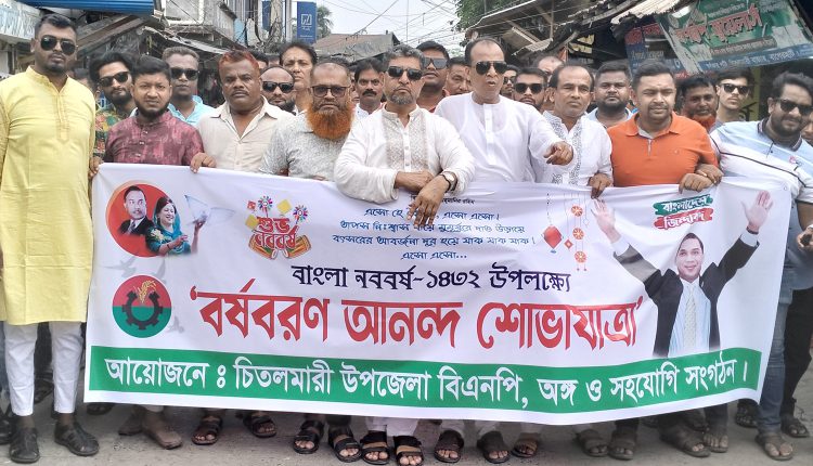 নববর্ষকে স্বাগত জানিয়ে চিতলমারী বিএনপি’র আনন্দ শোভাযাত্রা