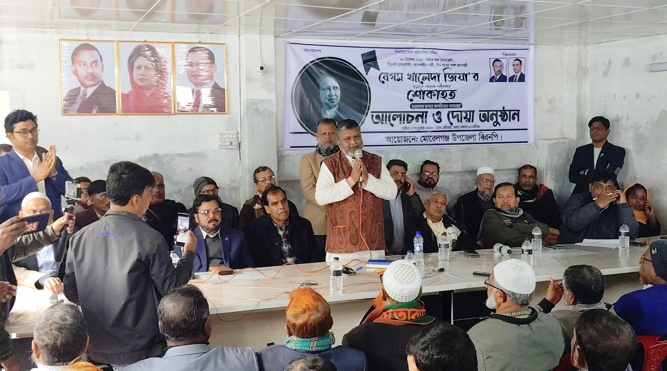 মোরেলগঞ্জ প্রতিনিধি:ত্রয়োদশ জাতীয় সংসদ নির্বাচনে মাঠে সকলকে তৎপর করতে বাগেরহাটের মোরেলগঞ্জে বর্ধিত সভা করেছে বিএনপি। উপজেলা ও পৌর বিএনপির উদ্যোগে রবিবার(৪ জানুয়ারি) বেলা ১১টার দিকে দলীয় কার্যালয়ে এ সভা অনুষ্ঠিত হয়। সভায় প্রধান অতিথি ছিলেন বাগেরহাট-৪, মোরেলগঞ্জ-শরণখোলা আসনে বিএনপি মনোনীত প্রার্থী সোমনাথ দে। উপজেলা বিএনপির সভাপতি শহিদুল হক বাবুলের সভাপতিত্বে অনুষ্ঠিত বর্ধিত সভায় পৌরসভা ও ১৬টি ইউনিয়ন বিএনপির সভাপতি, সাধারণ সম্পাদক ও সাংগঠনিক সম্পাদকগন উপস্থিত ছিলেন। সভার শুরুতে সাবেক প্রধানমন্ত্রী ও বিএনপির সাবেক চেয়ারম্যান প্রায়াত বেগম খালেদা জিয়ার রুহের মাগফিরাত কামনা করে দোয়া অনুষ্ঠিত হয়।