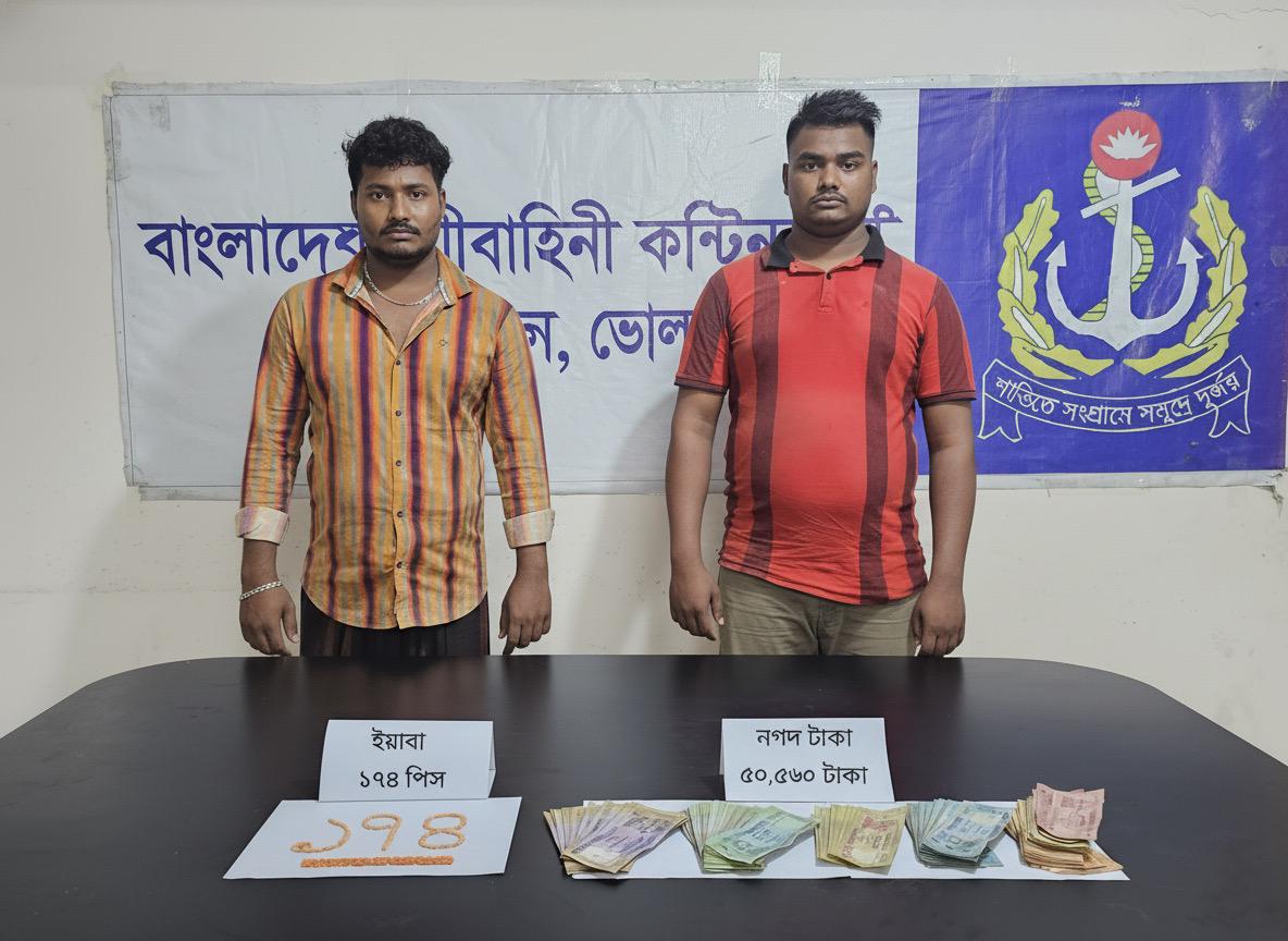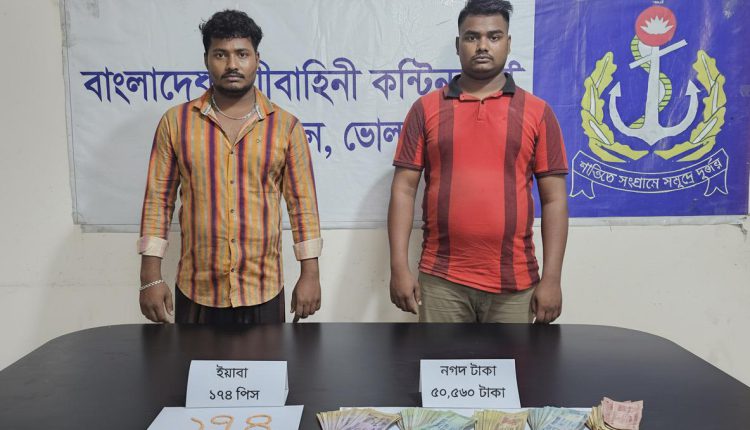 নৌবাহিনীর অভিযানে ভোলার লালমোহনে ০২ মাদক ব্যবসায়ী আটক