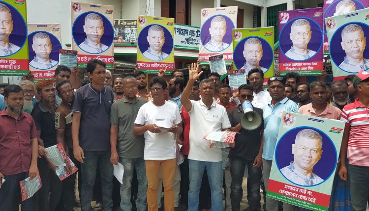 পাইকগাছায় সাবেক কেন্দ্রীয় ছাত্রনেতা রফিকুল ইসলামের ৩১ দফার লিফলেট বিতরণ