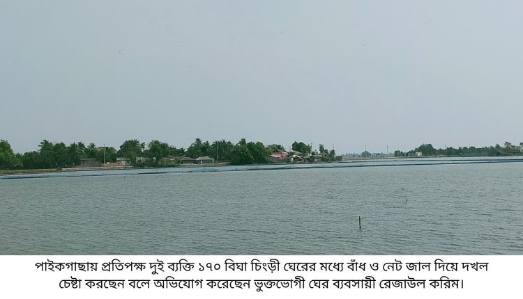 পাইকগাছায় ১৭০ বিঘা চিংড়ী ঘেরের মধ্যে বাঁধ দিয়ে দখল চেষ্টার অভিযোগ