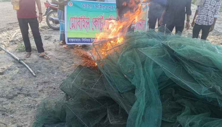 পরে জব্দকৃত জাল আগুনে পুড়িয়ে বিনষ্ট করা হয়। এ সময় উপস্থিত ছিলেন মেরিন ফিশারিজ কর্মকর্তা তরিকুল ইসলাম ও ক্ষেত্র সহকারী রণধীর সরকার।