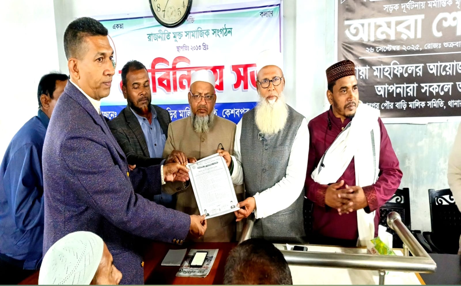 আলোচনা সভার শেষ পর্যায়ে কেশবপুর পৌর বাড়ি মালিক সমিতির সভাপতি মোঃ আশরাফুজ্জামান সমিতির বিভিন্ন কার্যক্রম ও সংগঠনের সামগ্রিক পরিস্থিতি সম্পর্কে লিখিত তথ্য প্রধান অতিথির হাতে তুলে দেন।