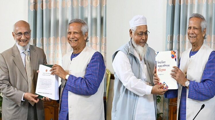 প্রধান উপদেষ্টা অধ্যাপক ড. মুহাম্মদ ইউনূসের কাছে বিচারবিভাগ ও জনপ্রশাসন সংস্কার কমিশনের প্রতিবেদন হস্তান্তর করা হয়েছে।