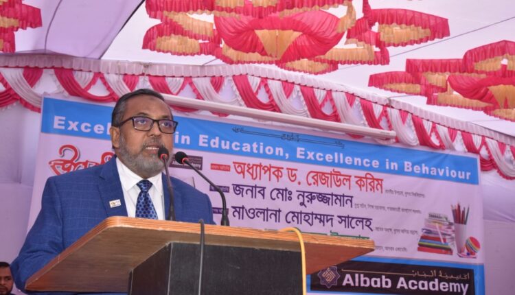 শুক্রবার (৩ জানুয়ারি) দুপুরে খুলনার এম এ বারি সড়কস্থ খুলনায় নতুন ধারার আন্তর্জাতিক মানের ইসলামিক ‘আলবাব একাডেমি’র প্রঙ্গনে উদ্বোধনী অনুষ্ঠানে প্রধান অতিথির বক্তব্যে এসব কথা বলেন খুলনা বিশ্ববিদ্যালয়ের উপাচার্য অধ্যাপক ড. রেজাউল করিম।
