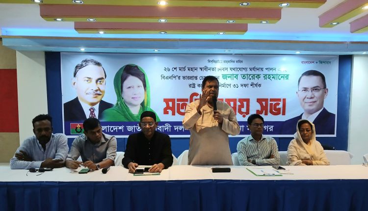 মহানগর বিএনপির সাধারণ সম্পাদক শফিকুল আলম তুহিনের পরিচালনায় সভায় বক্তব্য রাখেন ও উপস্থিত ছিলেন রেহানা ঈসা, শেখ সাদী, মাসুদ পারভেজ বাবু, চৌধুরী হাসানুর রশিদ মিরাজ, কেএম হুমায়ুন কবীর, হাফিজুর রহমান মনি, এড. শেখ মোহাম্মাদ আলী বাবু, মুর্শিদ কামাল, কাজী মিজানুর রহমান, মোল্লা ফরিদ আহমেদ, আসাদুজ্জামান আসাদ, হাবিবুর রহমান বিশ^াস, শেখ ইমাম হোসেন, আবু সাঈদ হাওলাদার আব্বাস, মহিলা দলের আজিজা খানম এলিজা, যুবদলের আব্দুল আজিজ সুমান, রবিউল ইসলাম রুবেল, স্বেচ্ছাসেবক দলের মিরাজুর রহমান মিরাজ, ইস্তিয়াক আহমেদ ইস্তি, শ্রমিকদলের মজিবর রহমান, শফিকুল ইসলাম শফি, কৃষকদলের আক্তারুজ্জামান সজীব তালুকদার, ছাত্রদলের তাজিম বিশ^াস সহ খুলনা মহানগরীর বিভিন্ন ওয়ার্ড বিএনপির সভাপতি, সাধারণ সম্পাদক, সাংগঠনিক সম্পাদকবৃন্দ উপস্থিত ছিলেন।
