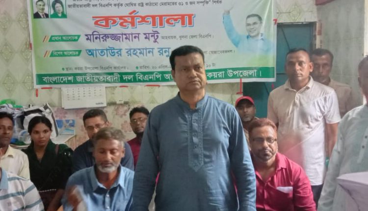 কয়রা উপজেলা বিএনপি ও তার অঙ্গ সংগঠন এই কর্মশালার আয়োজন করে। খুলনা জেলা বিএনপির সদস্য এম এ হাসানের পরিচালনায় এতে বিশেষ আলোচক ছিলেন খুলনা জেলা স্বেচ্ছাসেবক দলের আহবায়ক আতাউর রহমান রনু। এতে আরও বক্তব্য রাখেন পাইকগাছা পৌর বিএনপির আহবায়ক আসলাম পারভেজ, পাইকগাছা উপজেলা বিএনপির সদস্য সচিব ইমদাদুল হক, যুগ্ম আহবায়ক তৈাহিদুর রহমান মুকুল, খুলনা জেলা বিএনপির সদস্য আলহাজ্ব মনিরুজ্জামান বেল্টু, আলহাজ্ব আবু সাঈদ বিশ্বাস, কয়রা উপজেলা বিএনপি নেতা জিএম মাওলা বকস, সরদার মতিয়ার রহমান, কোহিনূর ইসলাম, আঃ সামাদ, এফ এম মনিরুজ্জামান, ইয়াকুব আলী,গাজী সিরাজুল ইসলাম, হাবিবুর রহমান, আবুল বাশার ডাবলু, প্রভাষক মঞ্জুর মোর্শেদ, ডিএম হাফিজুল ইসলাম,, রওশন মোল্যা ,উপজেলা যুবদলের আহবায়ক মোঃ শরিফুল আলম, সদস্য সচিব মোতাসিম বিল্লাহ, যুগ্ম আহবায়ক এহসানুর রহমান, আকবার হোসেন, যুবদল নেতা আবুল কালাম আজাদ কাজল, আছাদুল ইসলাম, মিজানুর রহমান লিটন, দেলোয়ার হোসেন, , কৃষক দল নেতা এস এম গোলাম রসুল, আবু সাঈদ মালী, স্বেচ্ছাসেবক দল নেতা নুরুল ইসলাম খোকা, ডিএম হেলাল উদ্দিন, প্রভাষক রবিউল ইসলাম, উপজেলা ছাত্রদলের আহবায়ক আরিফ বিল্যাহ সবুজ, সদস্য সচিব মাহমুদ হাসান, ছাত্র নেতা ইমরান হোসেন প্রমুখ। কর্মশালায় কয়রা উপজেলা বিএনপির ও তার সহযোগী সংগঠনের নেতাকর্মী অংশ গ্রহন করেন।