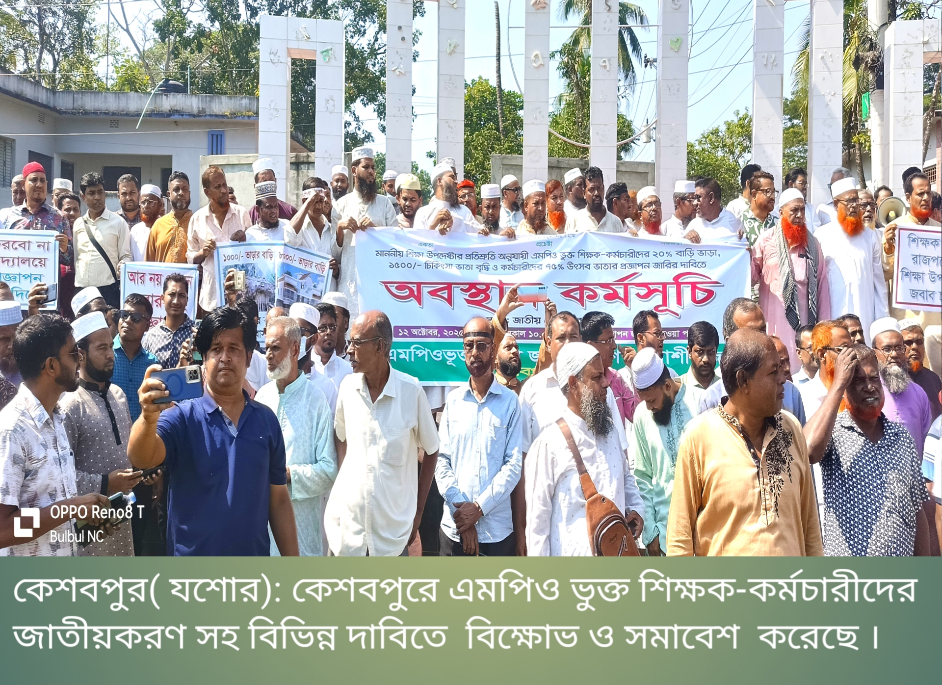 বিভিন্ন দাবীতে কেশবপুরে এমপিও ভুক্ত শিক্ষকদের অবস্থান