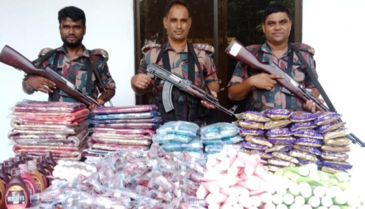 মঙ্গলবার (১ জুলাই) বিজিবি’র যশোের ৪৯ ব্যাটালিয়নের আওতাধীন এলাকায় টহলদল পাঁচপীরতলা, আন্দুলিয়া, বেনাপোল বিওপি, বেনাপোল আইসিপি এবং আমড়াখালী চেকপোষ্টের সীমান্ত এলাকায় মাদকদ্রব্য ও চোরাচালান বিরোধী অভিযান পরিচালনা করে বিদেশী মদ, ভারতীয় ফেন্সিডিল, শাড়ী, কম্বল, থ্রী-পিস, থান কাপড়, পোশাক সামগ্রী, বিভিন্ন প্রকার চকলেট, খাদ্য সামগ্রী এবং কসমেটিক্স সামগ্রী আটক করে। আটককৃত মালামালের সিজার মূল্য ৬৬ লাখ ৭৩ হাজার , ১০ টাকা।
